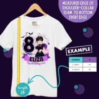 Celebrate your little one’s big day with this personalized gothic doll-style birthday shirt, designed with a mix of spooky and adorable details. Customize it with your child’s name, age, or text on the back for a one-of-a-kind birthday look. Available in matching family versions for Mommy, Daddy, Siblings, and more — perfect for family photos and themed parties. This high-quality cotton blend shirt is soft, comfortable, and durable, ideal for active kids and all-day wear. Choose from five color options — black, white, natural, light blue, and pink — and sizes ranging from 6 months to 4XL for a perfect fit for everyone in the family.