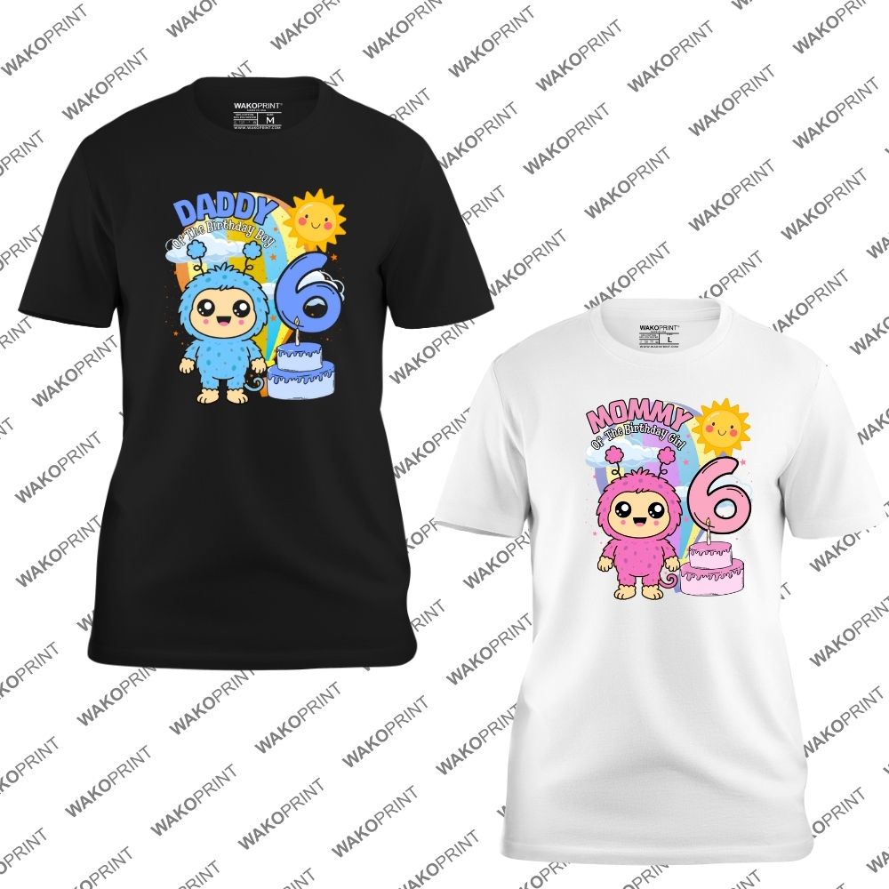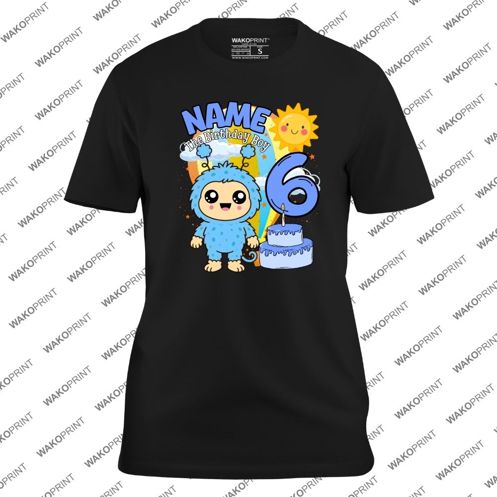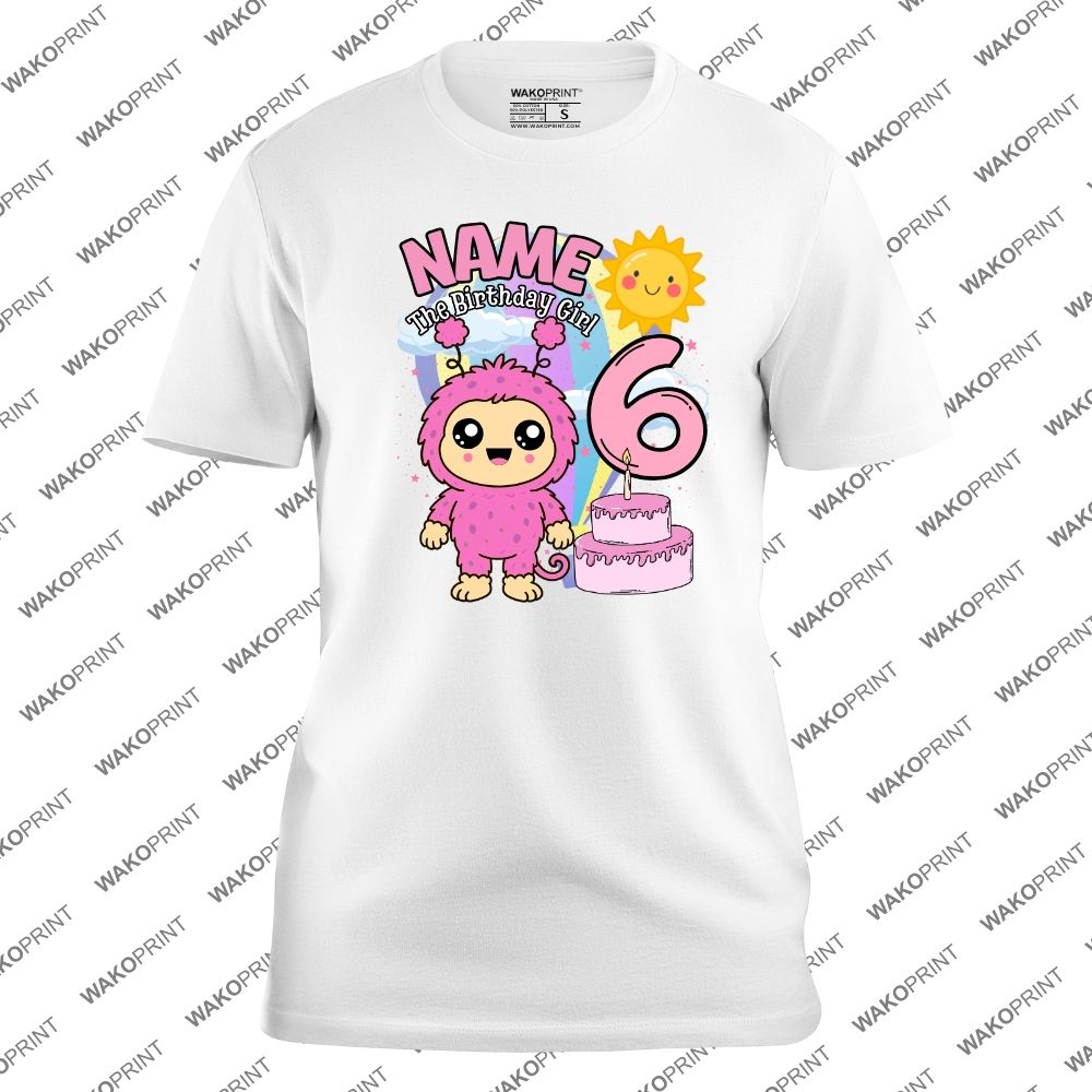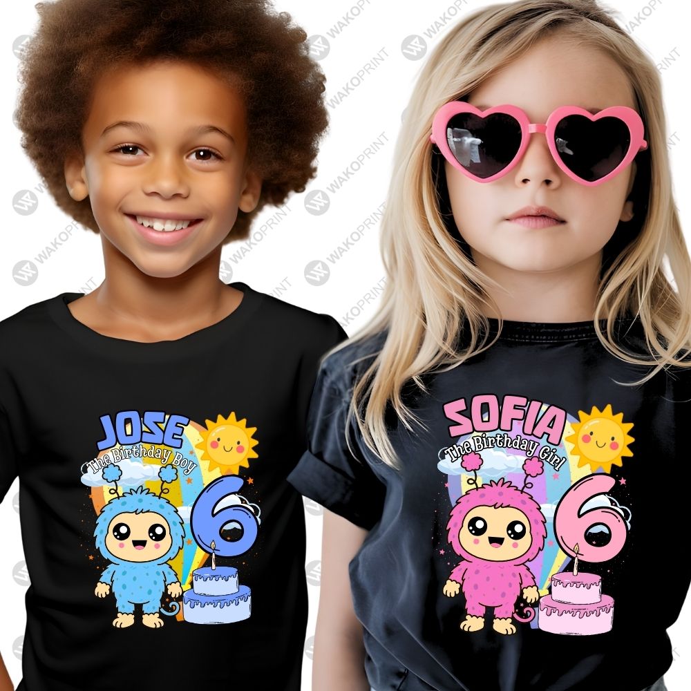 Home Holidays & Celebrations Birthday Personalized Birthday T-Shirt – Cute Pink & Blue Monster with Name & Age – For Boys, Girls & Family