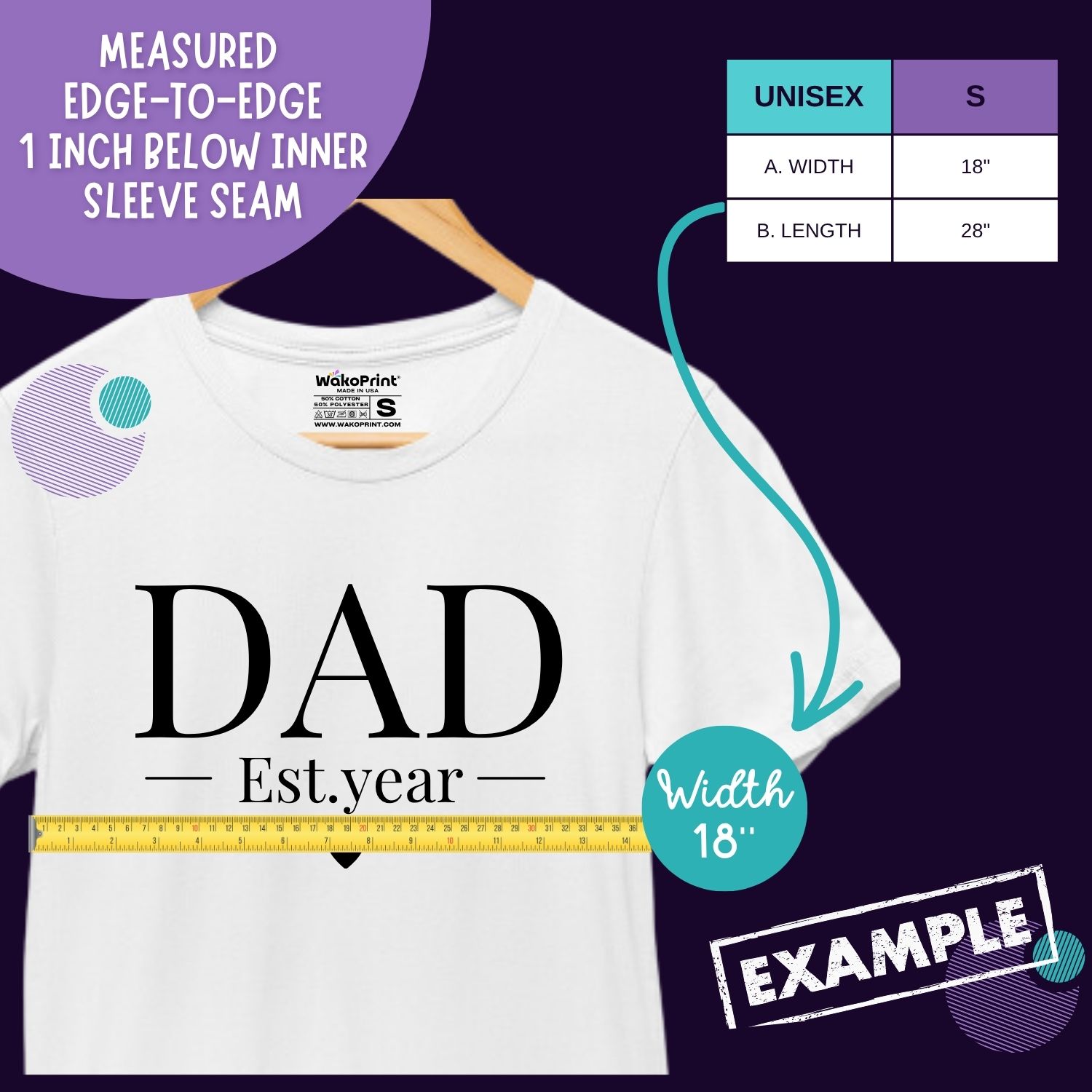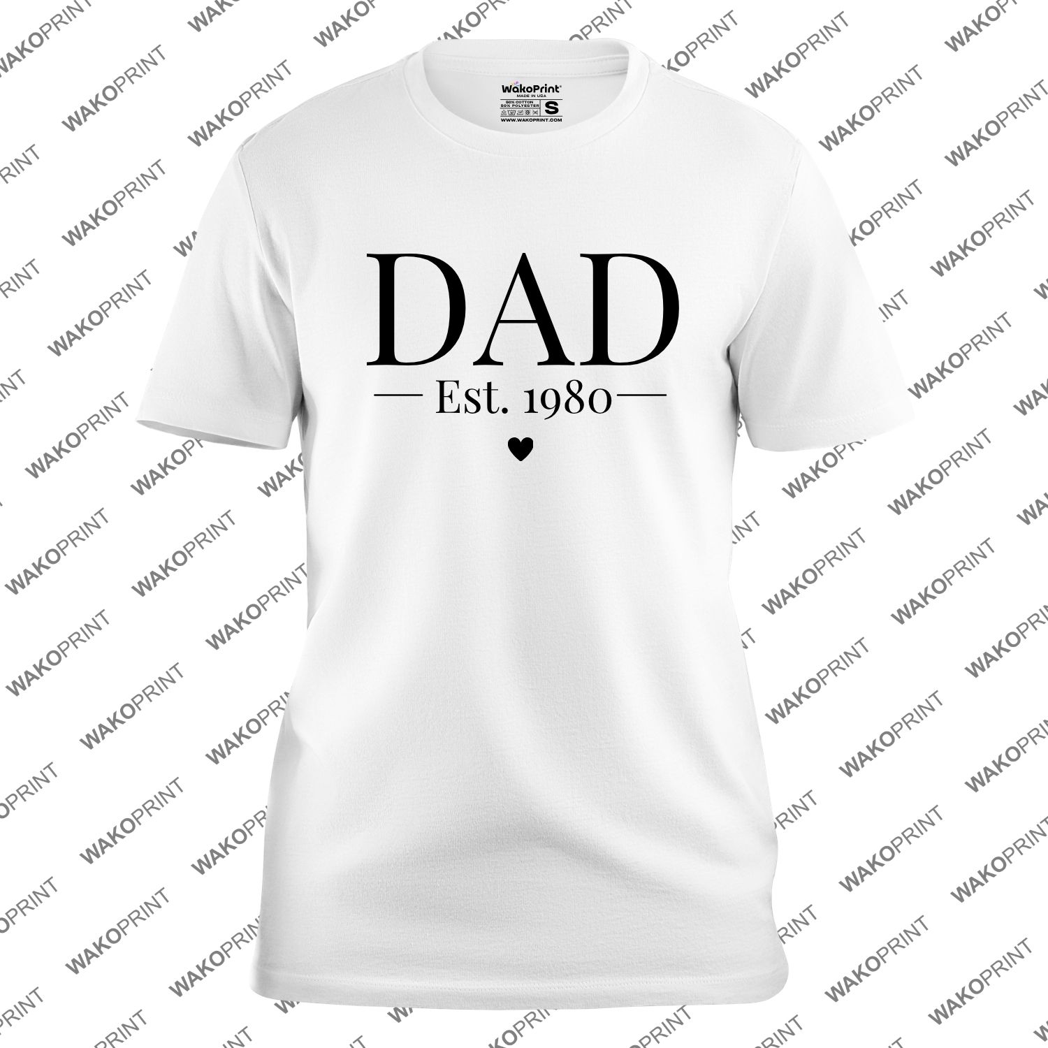 Personalized Dad T-Shirt, Custom “Dad Est. Year” Shirt – Fathers Day, Birthday, White Black Navy Light Blue Natural, S-4XL