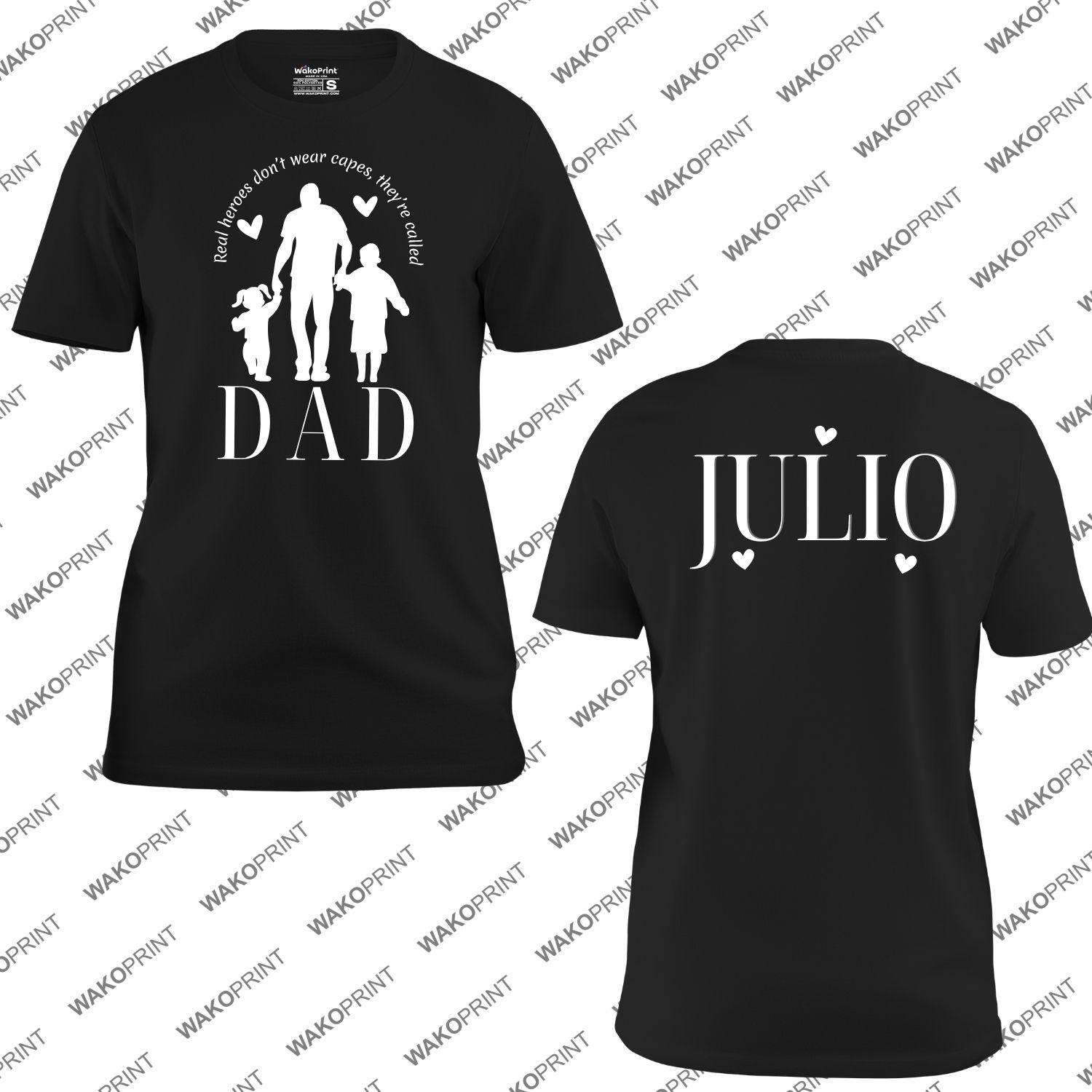 Personalized Dad T-Shirt, “Real Heroes Don’t Wear Capes, They are Called Dad” Shirt – Custom Dad Text Front & Back, Birthday for Dad.