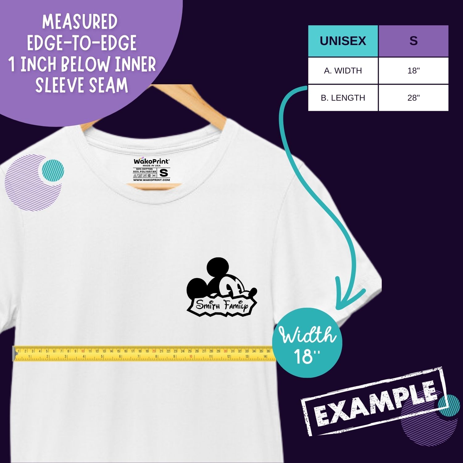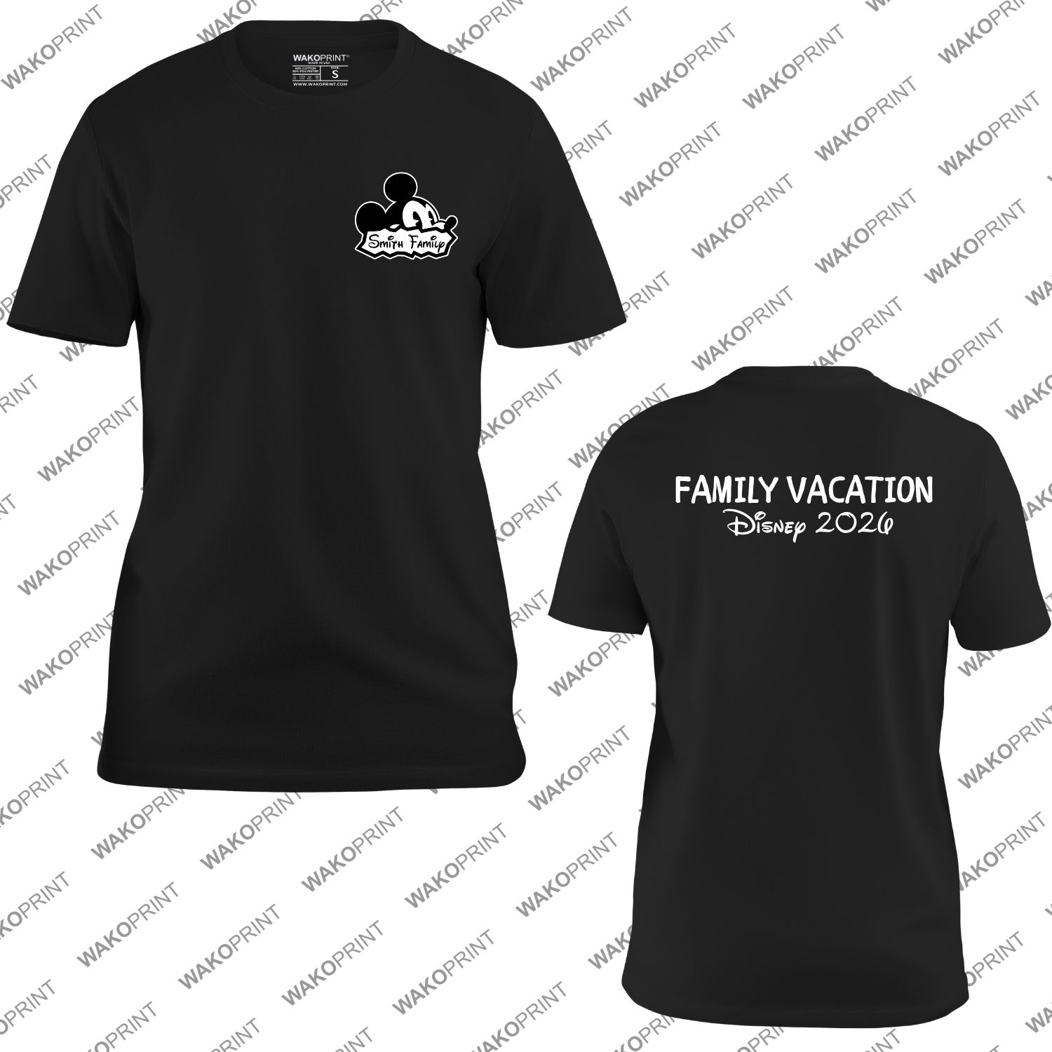 This design blends a fun, iconic style with a personal touch—add your family name on the front and showcase your special vacation memory on the back. Perfect for standing out as a group and creating memories that go beyond photos.