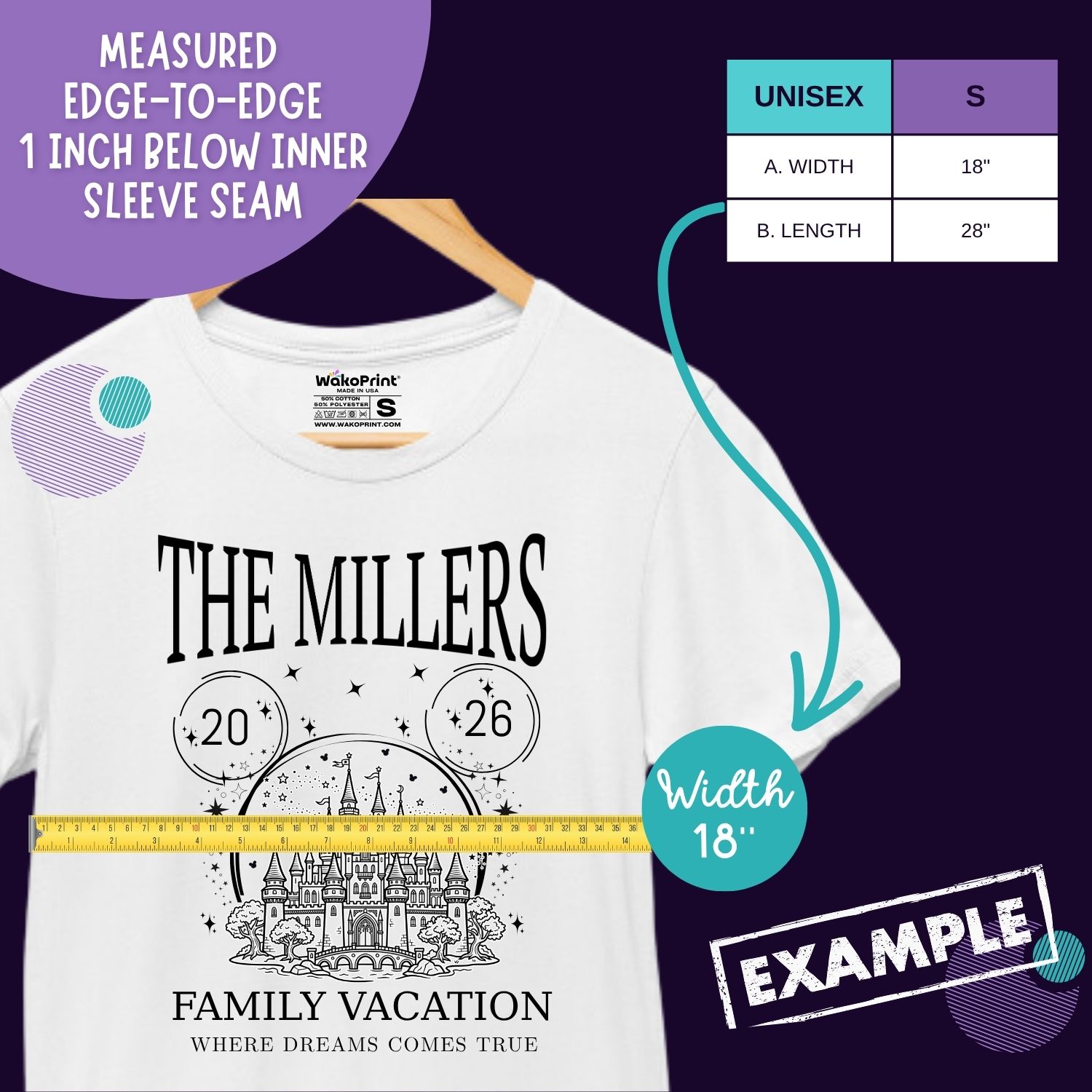 This personalized t-shirt is the perfect way to celebrate your magical vacation together. Featuring a beautiful castle-inspired design, your family name, and a custom year, it captures those once-in-a-lifetime moments in a stylish and meaningful way.