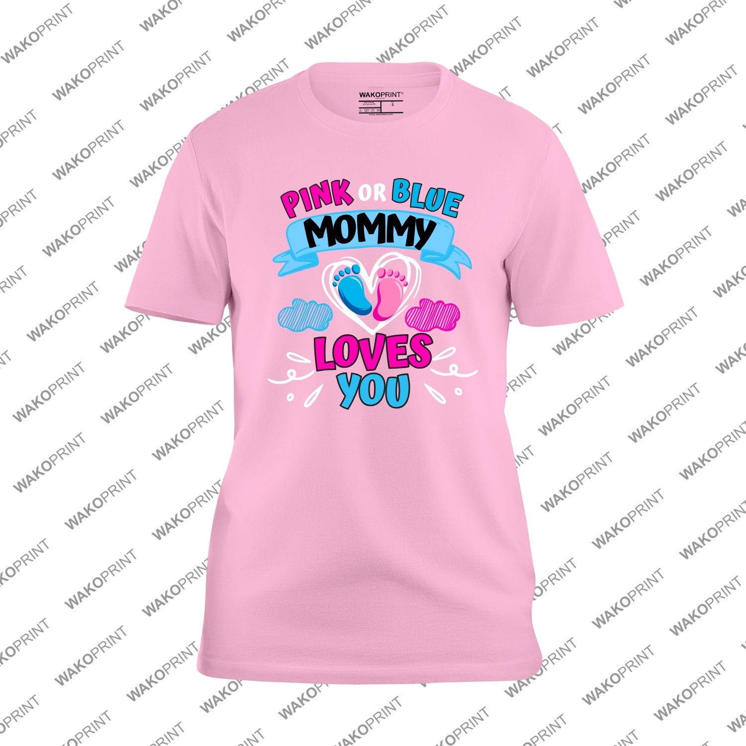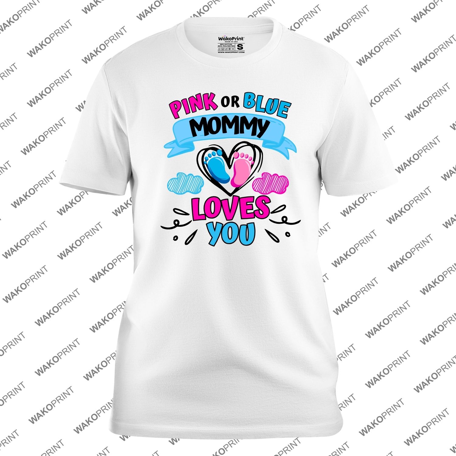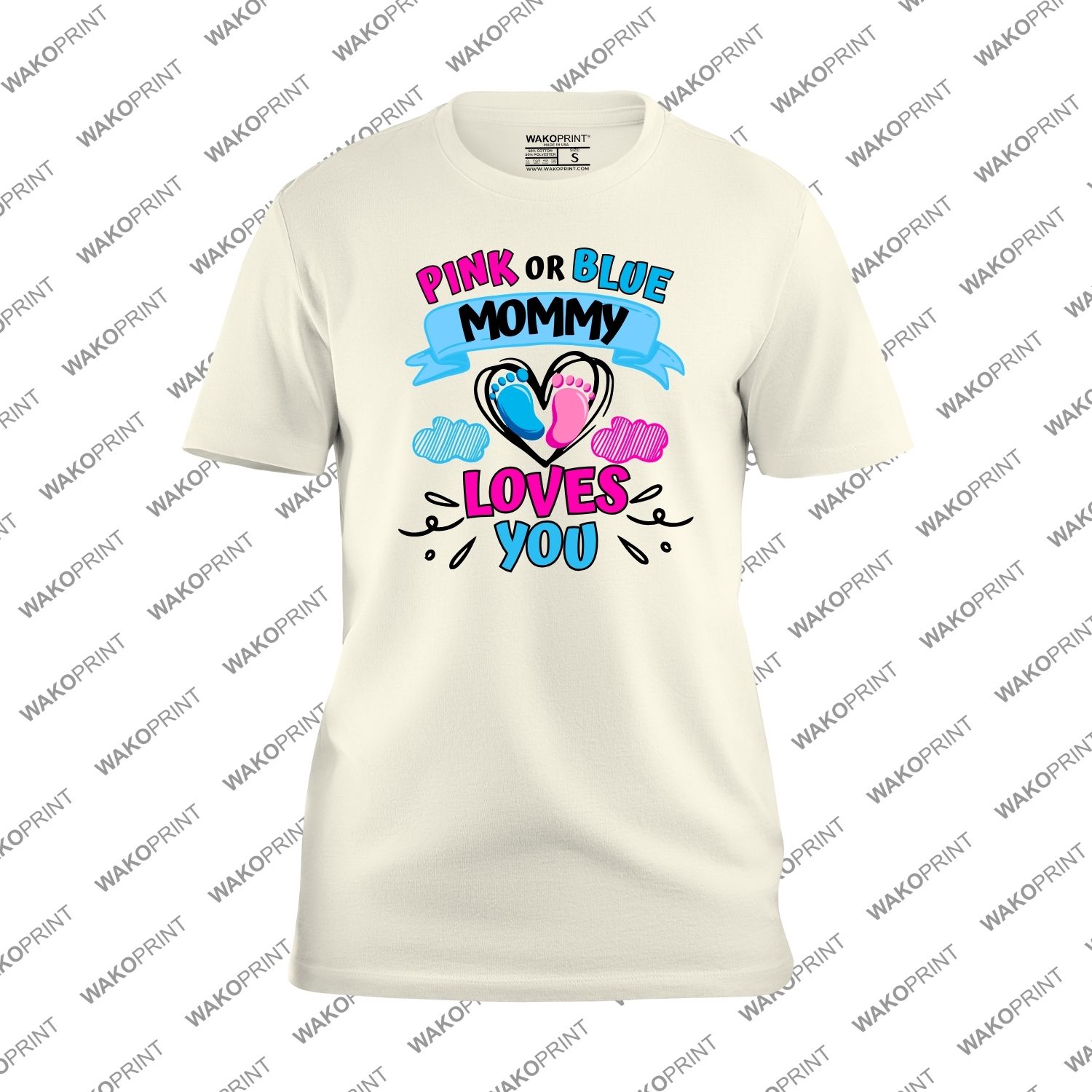Celebrate the love and excitement of your baby’s gender reveal with this Personalized “Pink or Blue Mommy Loves You” T-Shirt. Designed for moms, families, and baby shower celebrations