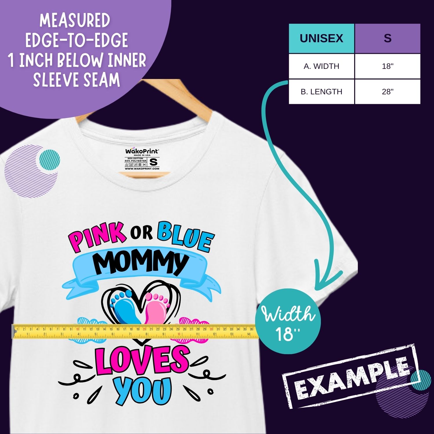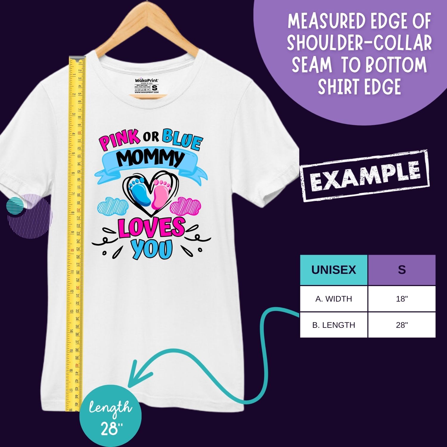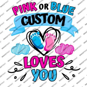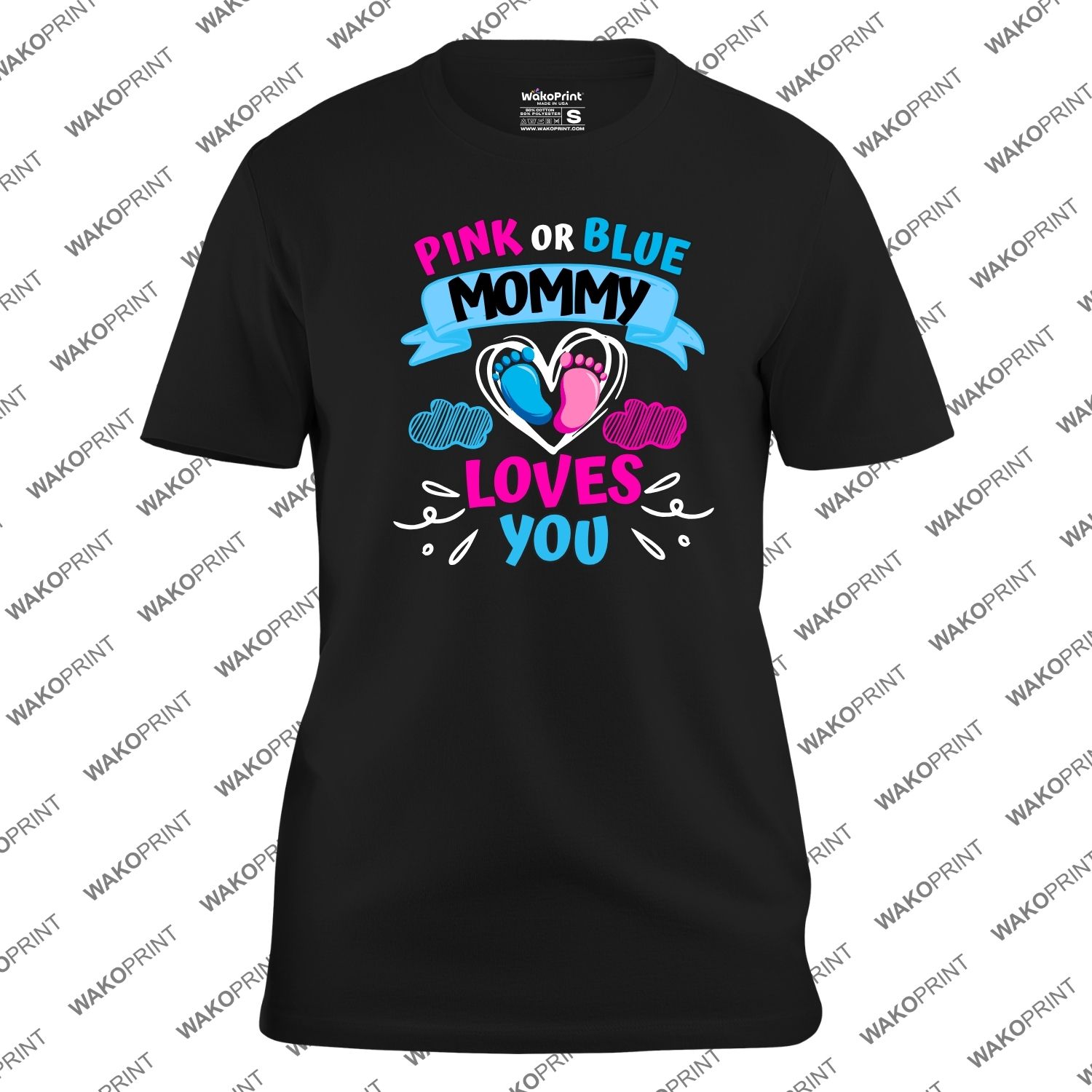 Celebrate the love and excitement of your baby’s gender reveal with this Personalized “Pink or Blue Mommy Loves You” T-Shirt. Designed for moms, families, and baby shower celebrations