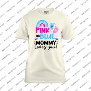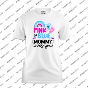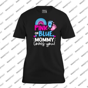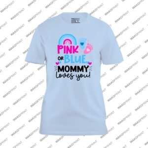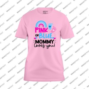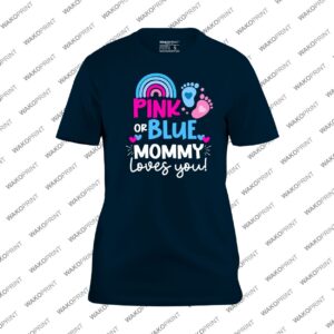 Celebrate your baby reveal in style with this Personalized “Pink or Blue Mommy Loves You” T-Shirt — a perfect choice for gender reveal parties, pregnancy photos, and baby showers.
