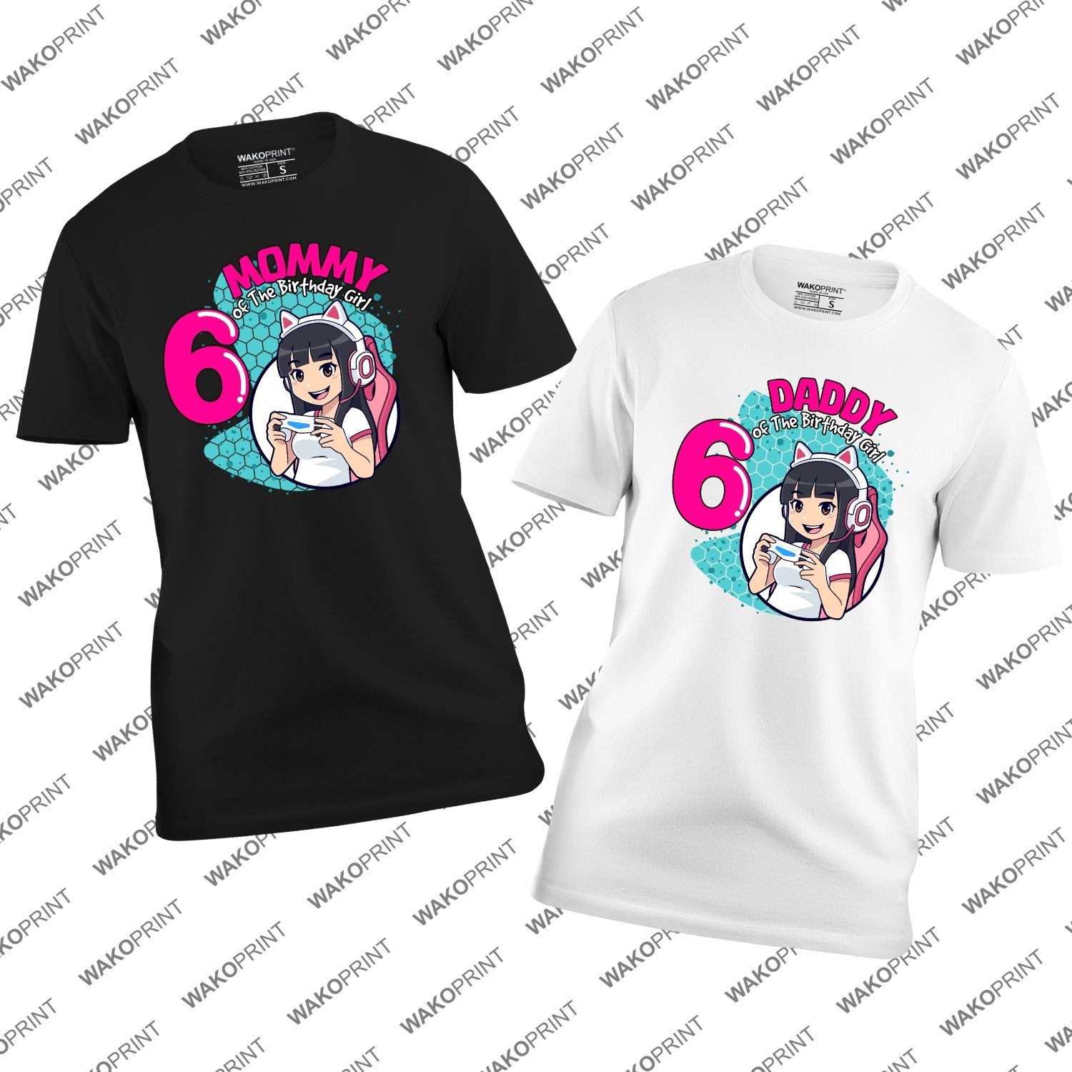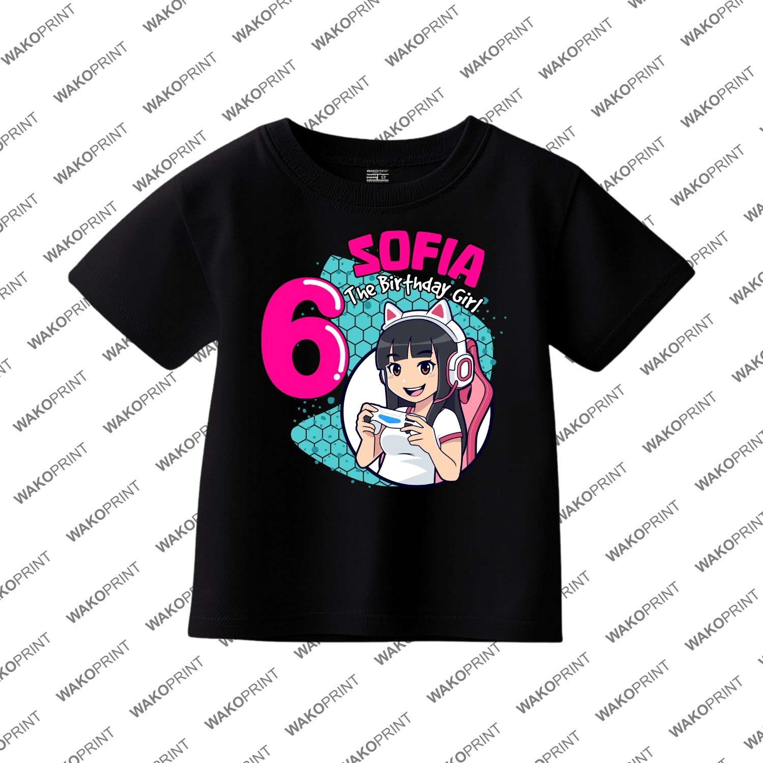 Home Holidays & Celebrations Birthday Personalized Gamer Girl Birthday Shirt | Custom Name and Age | Cute Anime Style Gamer Design | Add Text on Back 6M–4XL | Black White Natural Light Blue Pink