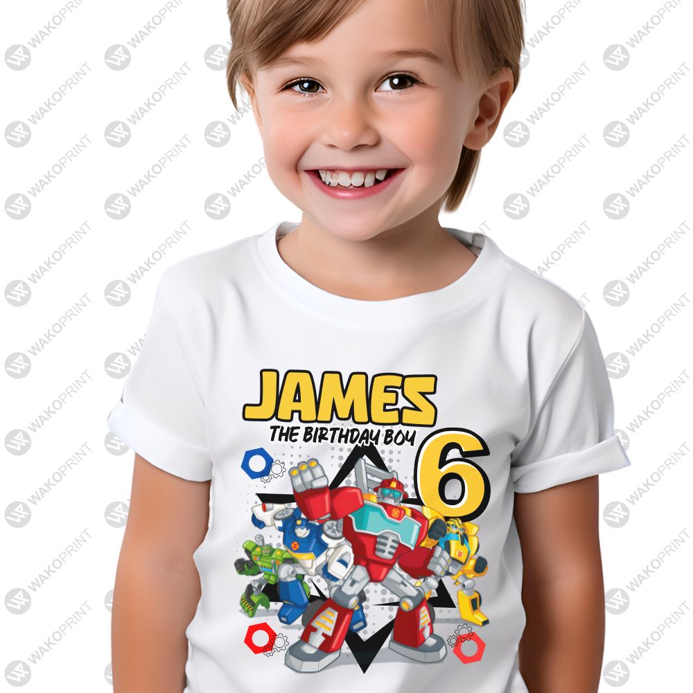 Personalized Kids Transformers Jersey T-Shirt – Custom Name & Number – Perfect for Birthdays, Playtime & Fan Events