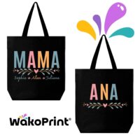 Personalized Mama Tote Bag with Kids’ Names | Custom Black Canvas Bag | Add Text on Back | Perfect for Moms and Grandmas | Reusable Everyday Tote