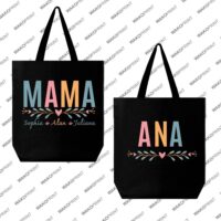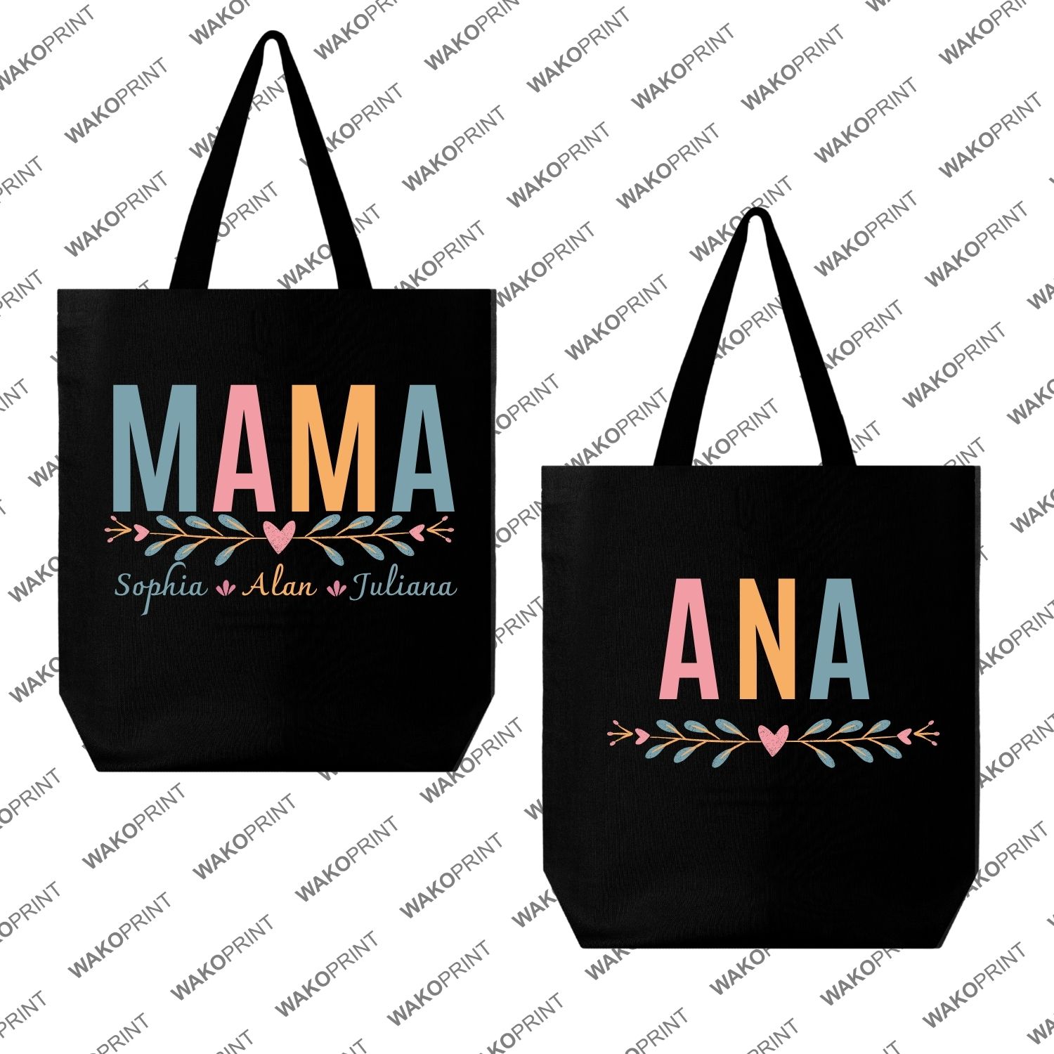 Home Totebags Mom Personalized Mama Tote Bag with Kids’ Names | Custom Black Canvas Bag | Add Text on Back | Perfect for Moms and Grandmas | Reusable Everyday Tote