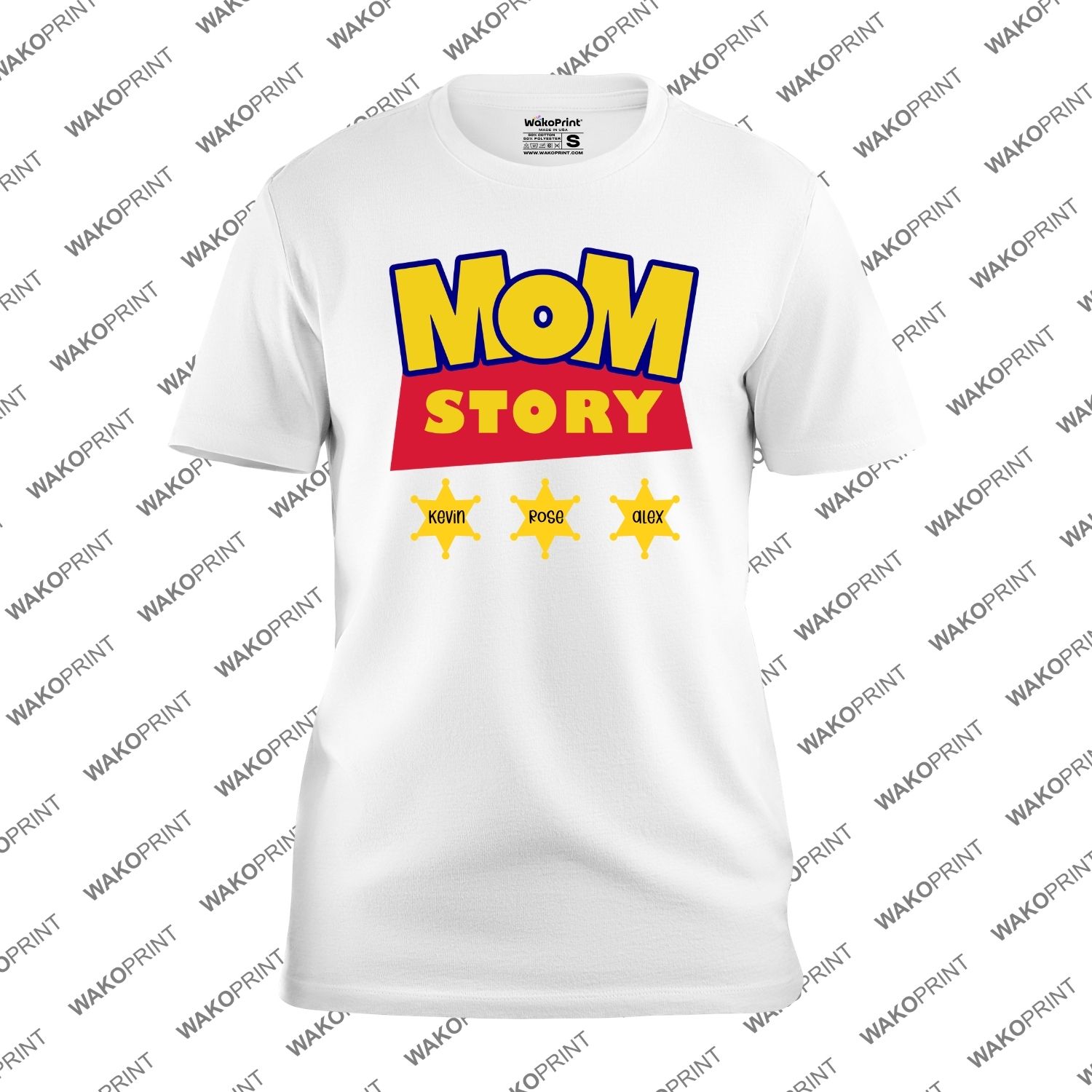 Personalized “Mom Story” T-Shirt with Fun Iconic Design, Kids’ Names & Custom Name on the Back – Unique and Creative Gift for Mom for Any Occasion