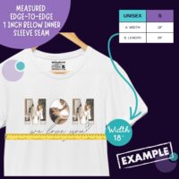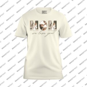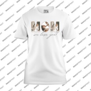 This personalized t-shirt turns your most special memories into something unforgettable. Featuring the word MOM filled with meaningful photos and the message “we love you,” it’s a beautiful way to express everything you feel without saying too much.