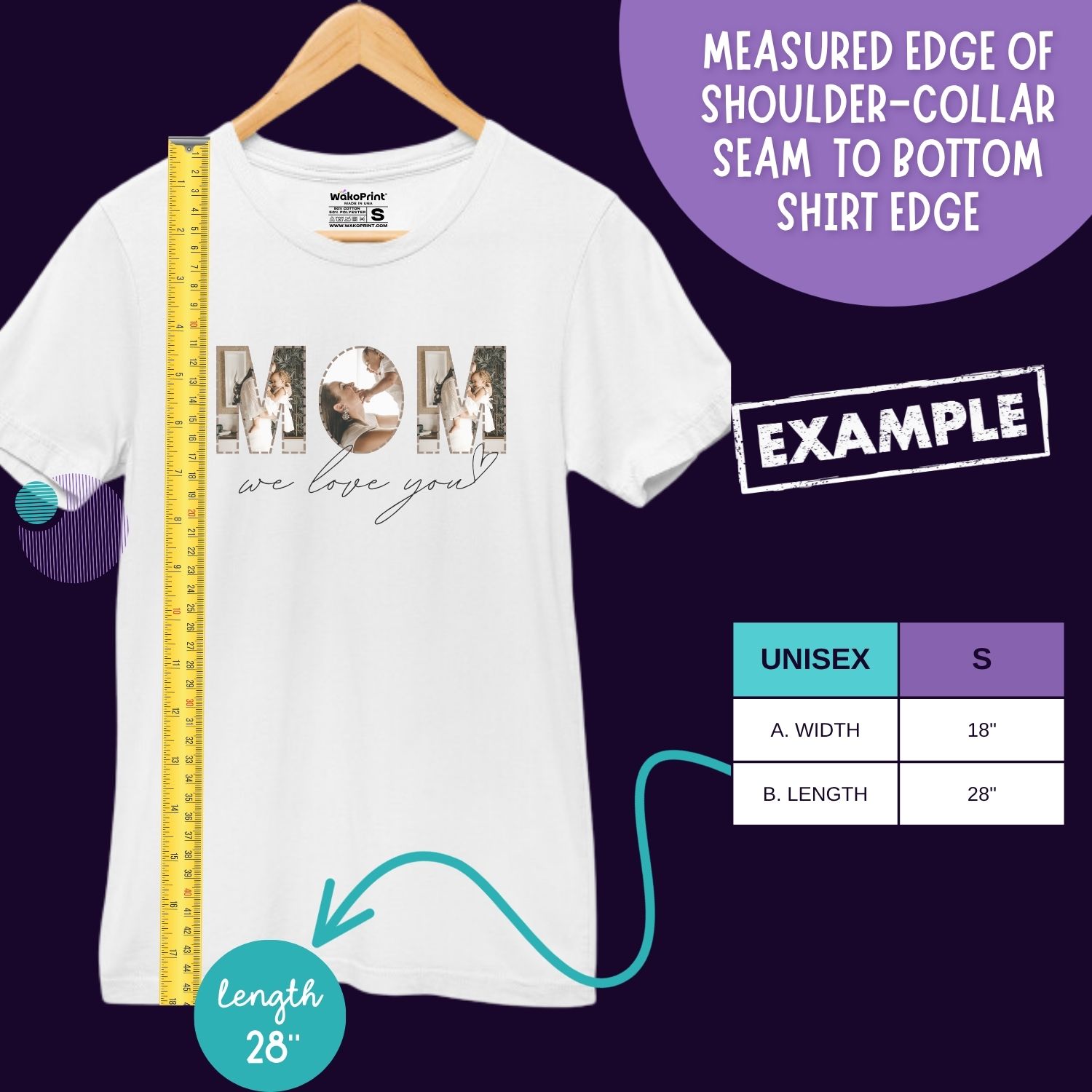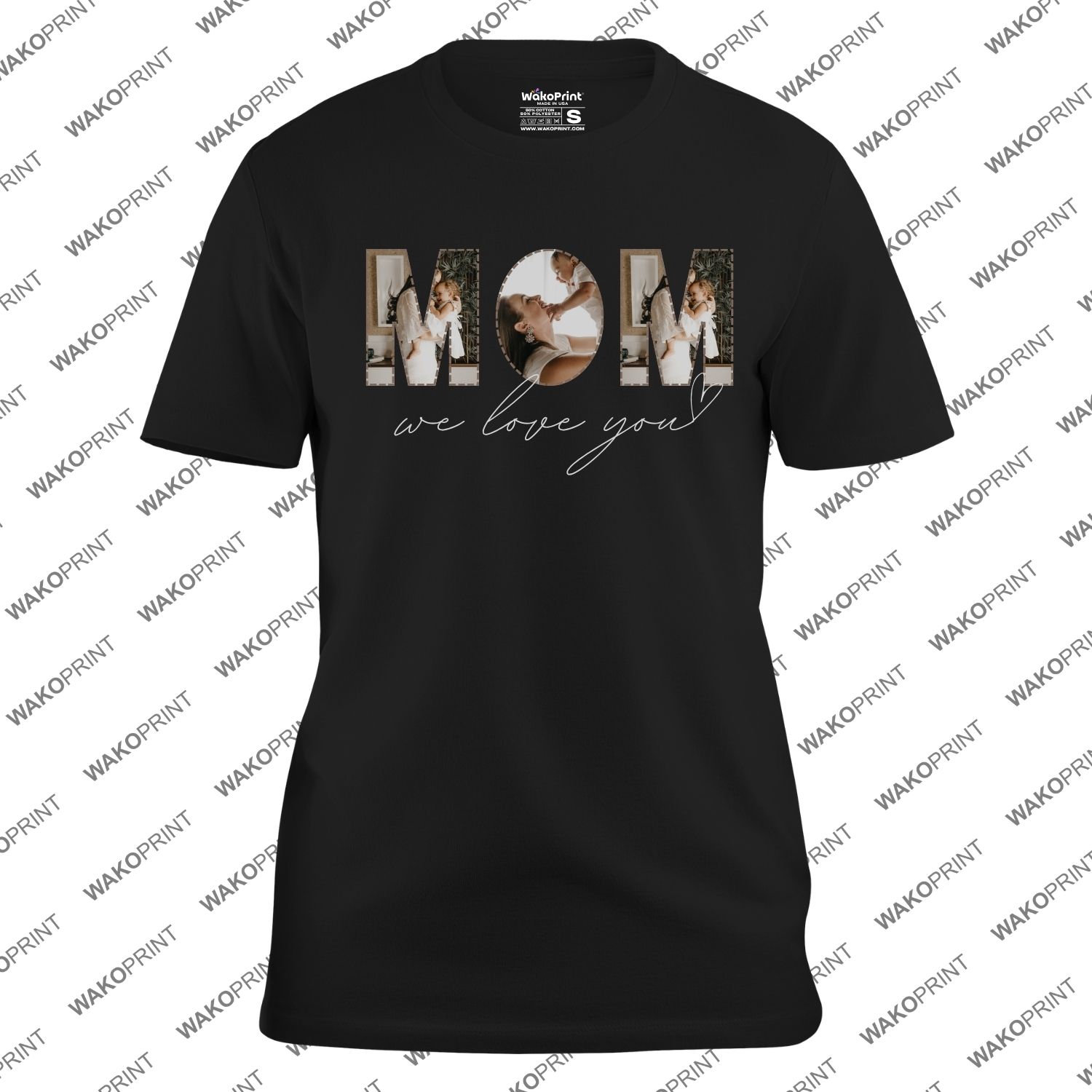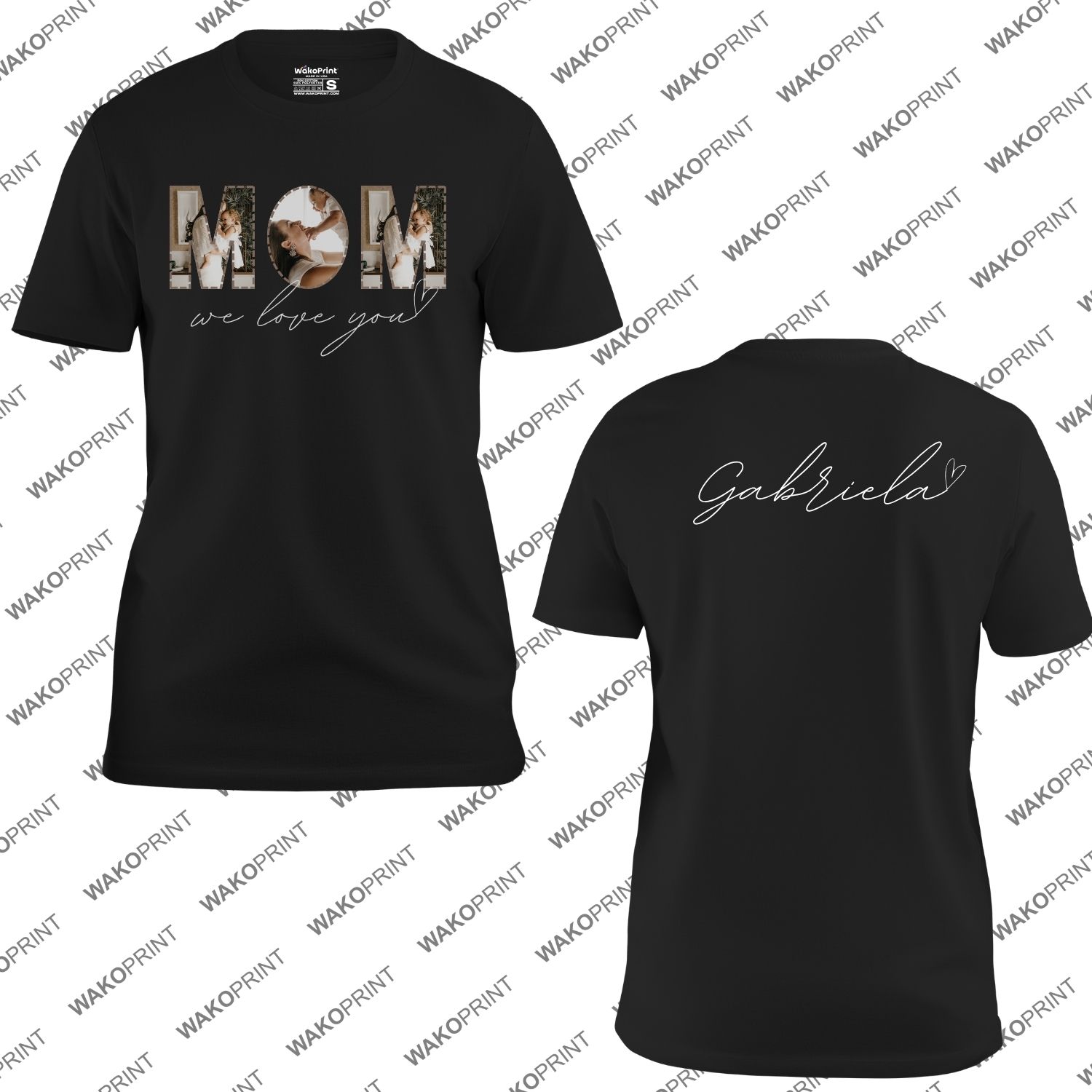 Personalized “Mom, We Love You” Photo T-Shirt with Custom Name on the Back – Emotional and One-of-a-Kind Gift for Mom for Any Occasion