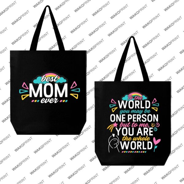 Best Mom Ever Tote Bag | Reusable Black Canvas Bag | Double-Sided Design with Heartfelt Quote | Perfect for Mothers and Women | Add Custom Text on Back