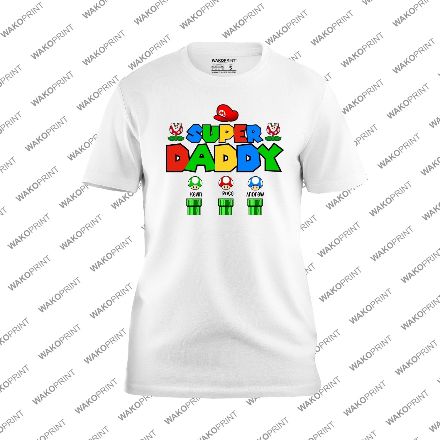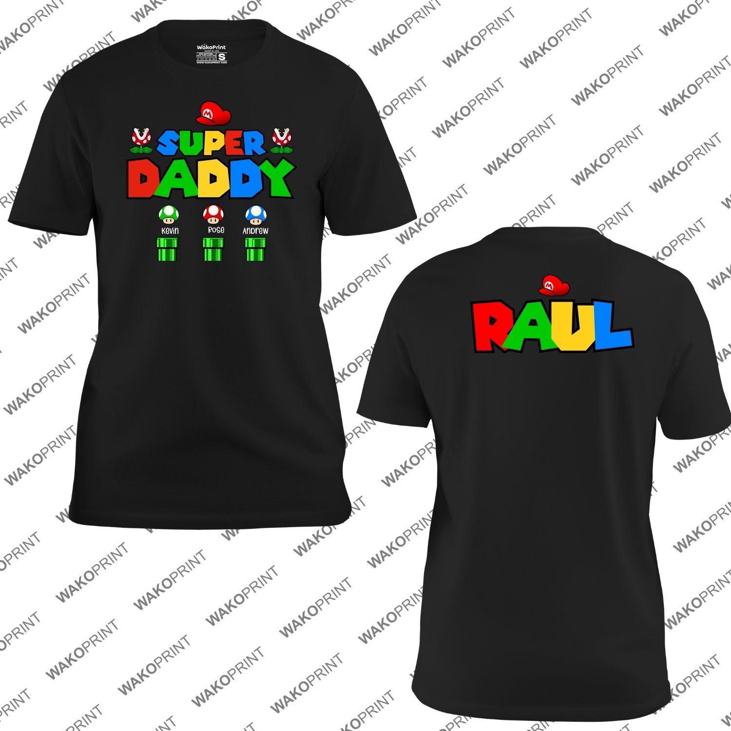Personalized “Super Daddy” Retro Gamer T-Shirt with Kids’ Names & Custom Name on the Back – Fun and Unique Gift for Dad