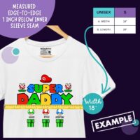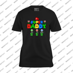 This “Super Daddy” t-shirt is inspired by classic retro gaming style, perfect for dads who are real-life heroes. With a bold, colorful, and nostalgic design, it turns dad into the main character of his own adventure.
