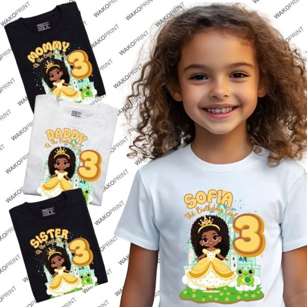 Princess Birthday Shirt – Custom Name and Age – Matching Family Outfit – White & Black Colors