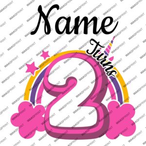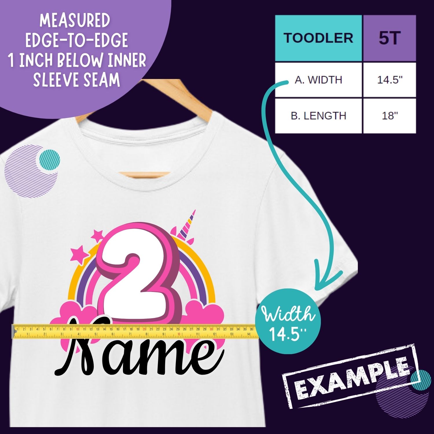 Rainbow Birthday Girl Shirt | Personalized Name and Age Tee for Toddlers and Family | Unicorn Theme Matching Birthday Shirts | Sizes 6M–4XL | Black White Light Blue Natural Navy Pink