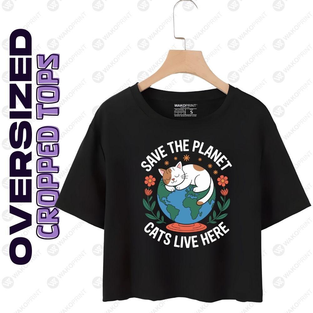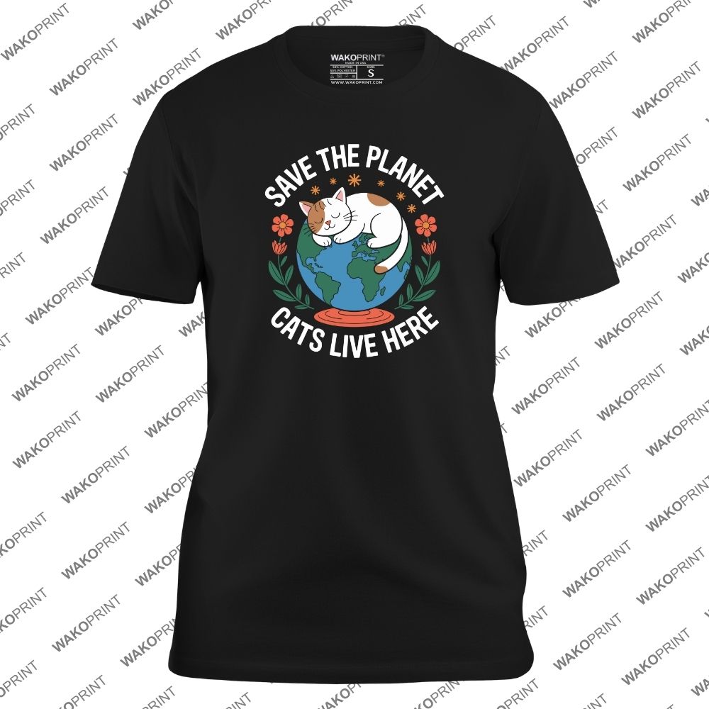Save The Planet Cats Live Here T-Shirt – Cute Cat Lover Earth Day Shirt, Funny Eco Friendly Kitten Graphic Tee