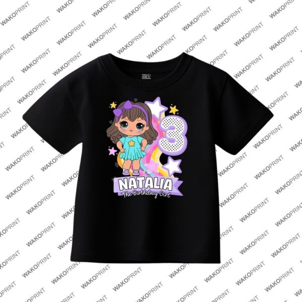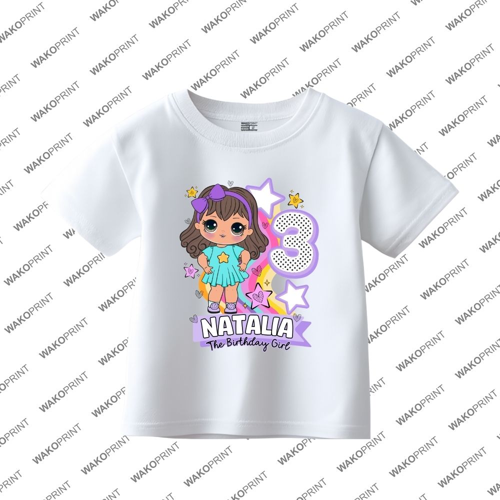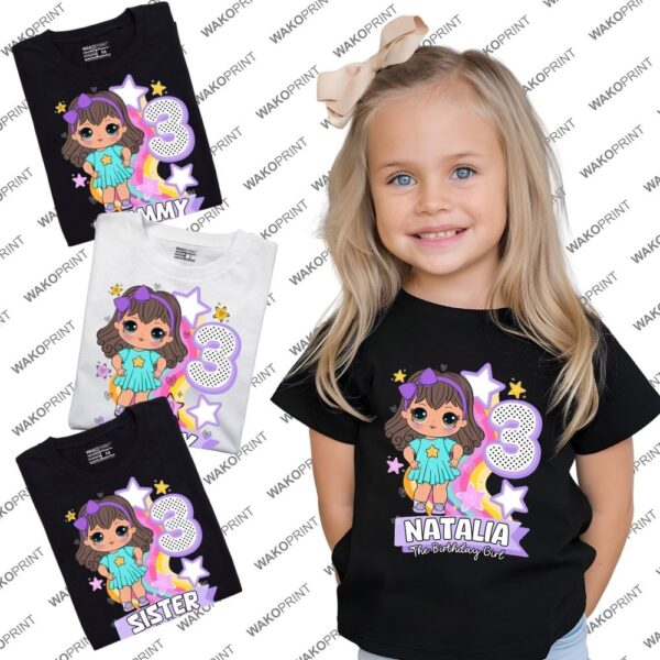 Surprise Birthday T-Shirt for Girls – Personalized with Name and Age, Cute Doll-Inspired Design
