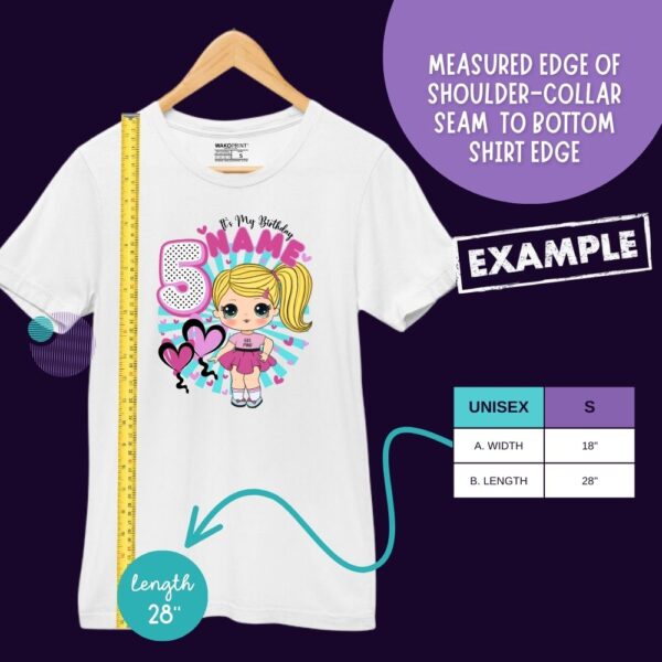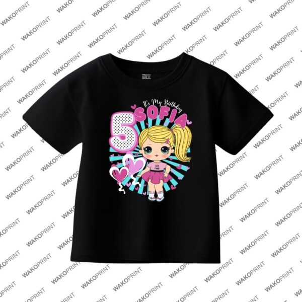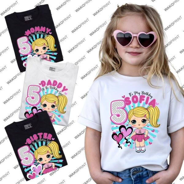 Surprise Birthday T-Shirt for Girls – Personalized with Name and Age, Cute Doll-Inspired Design