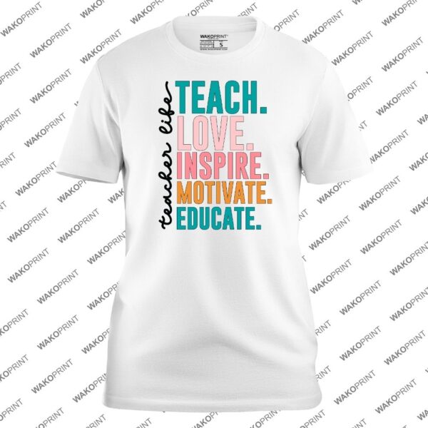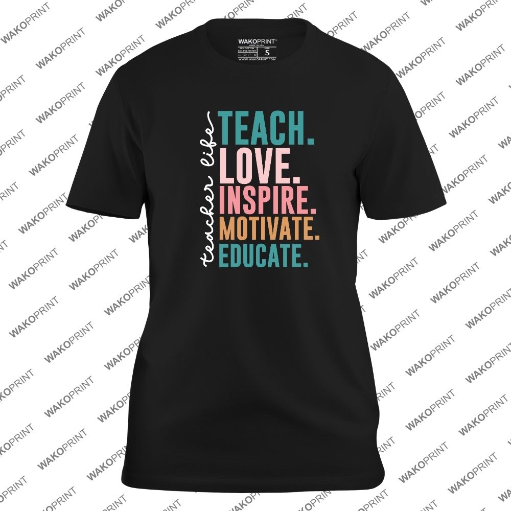 Teacher Life T-Shirt – Teach Love Inspire Motivate Educate Graphic Tee – Inspirational Shirt for Teachers.