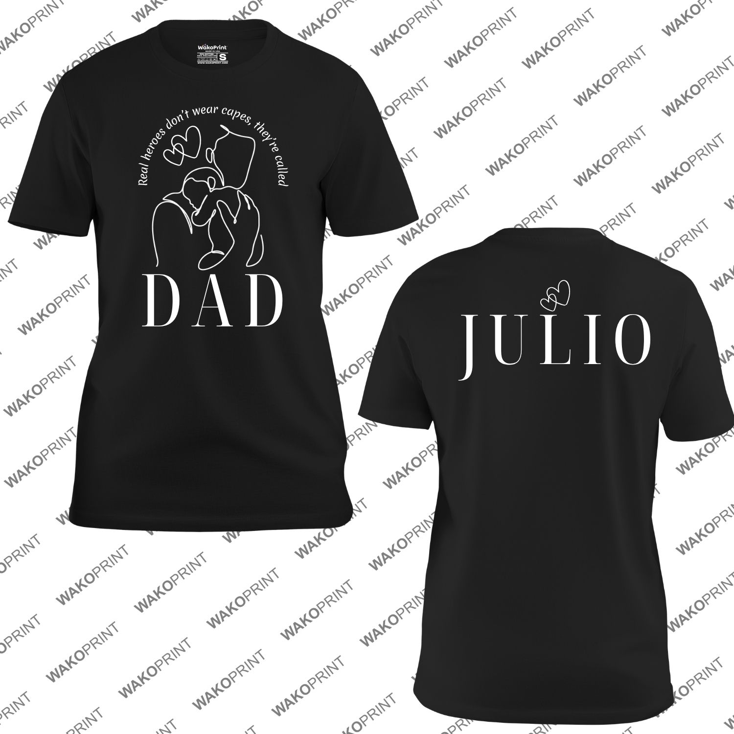Personalized Dad T-Shirt, “Real Heroes Don’t Wear Capes, They are Called Dad” Shirt – Custom Dad Text Front & Back, Birthday for Dad.