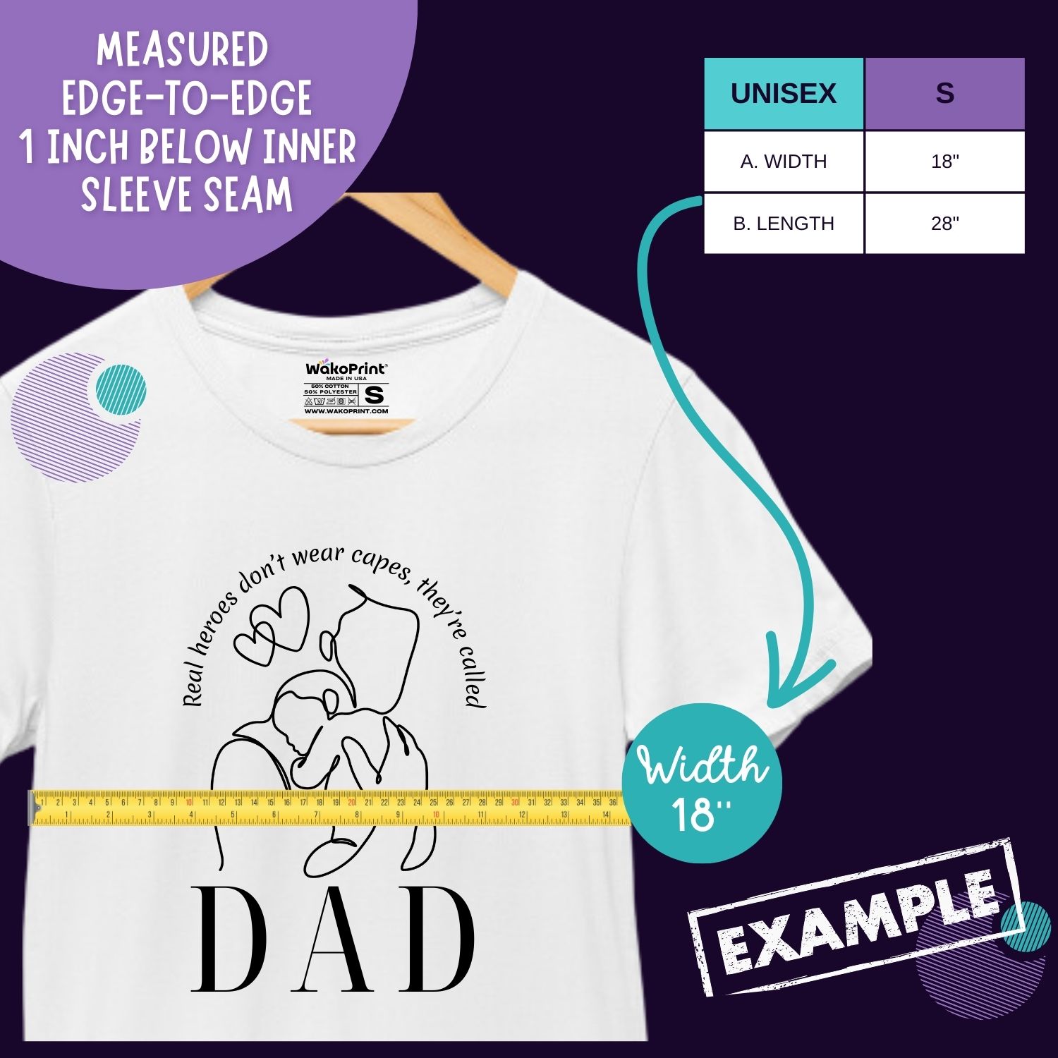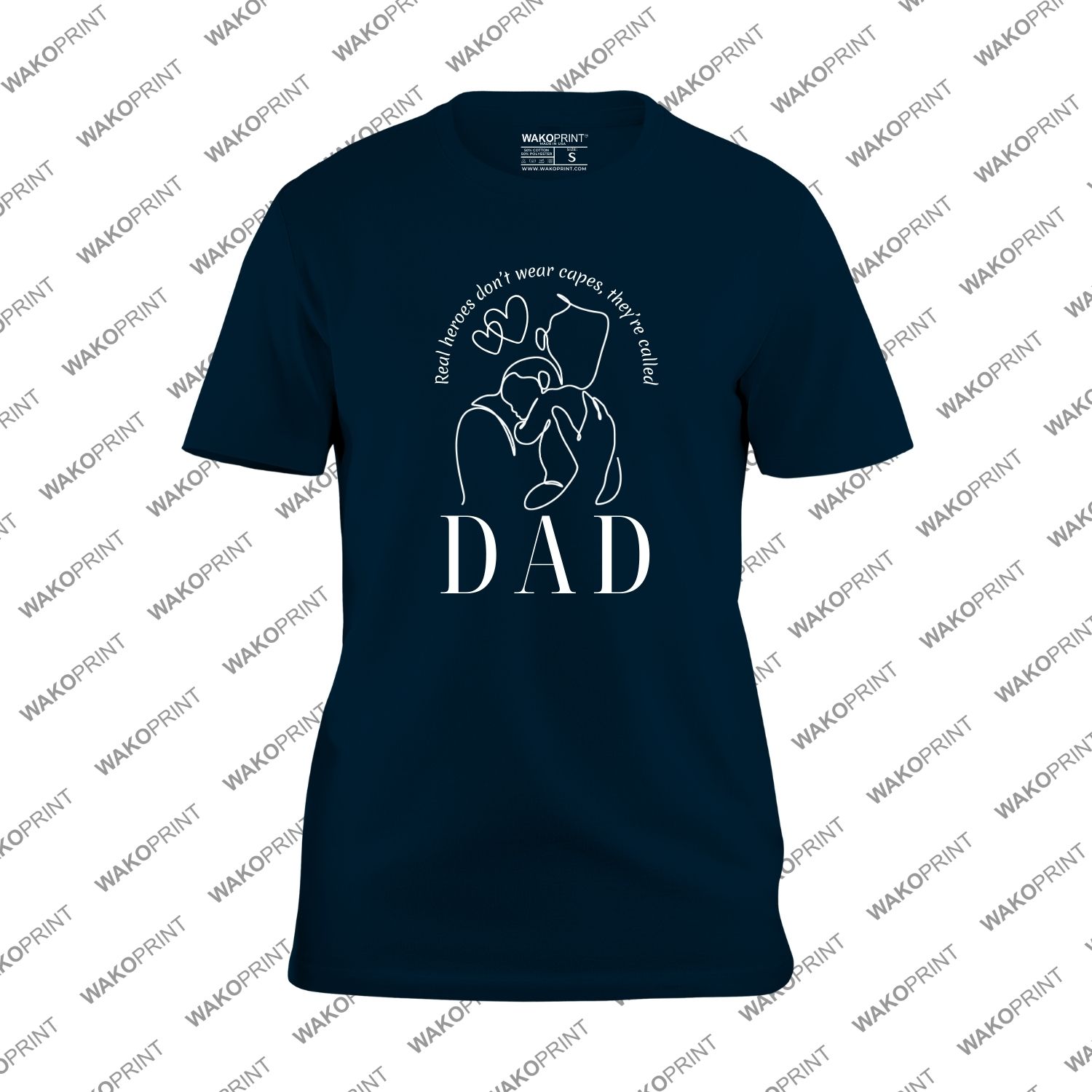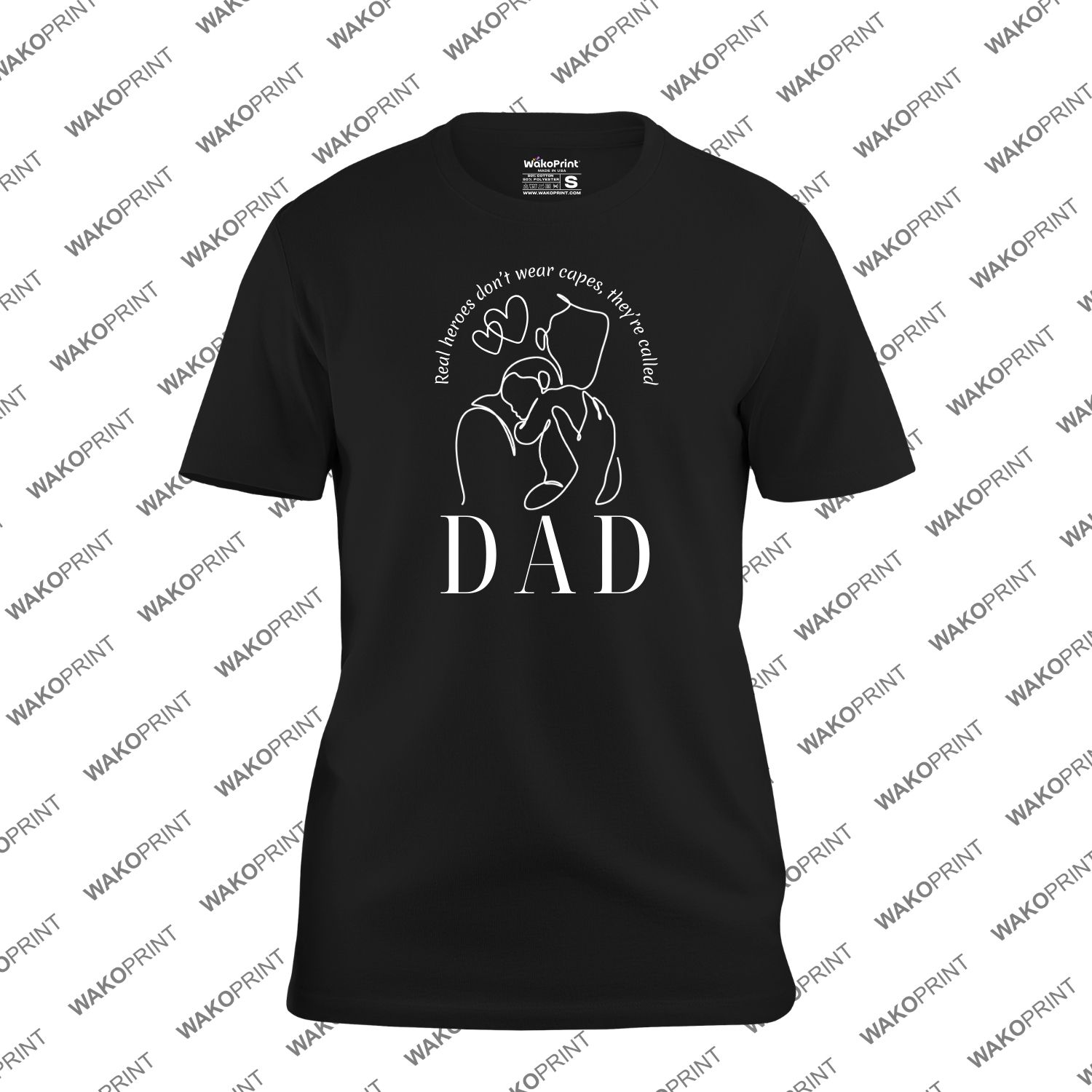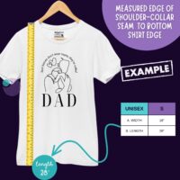 Personalized dad t-shirt featuring the powerful quote “Real heroes don’t wear capes, they are called Dad.” Customize the word “DAD” on the front and add a special message on the back, such as names or a meaningful date. Available in multiple colors and sizes, it’s the perfect gift for Father’s Day, birthdays, or any special occasion. A meaningful shirt that celebrates everyday heroes.
