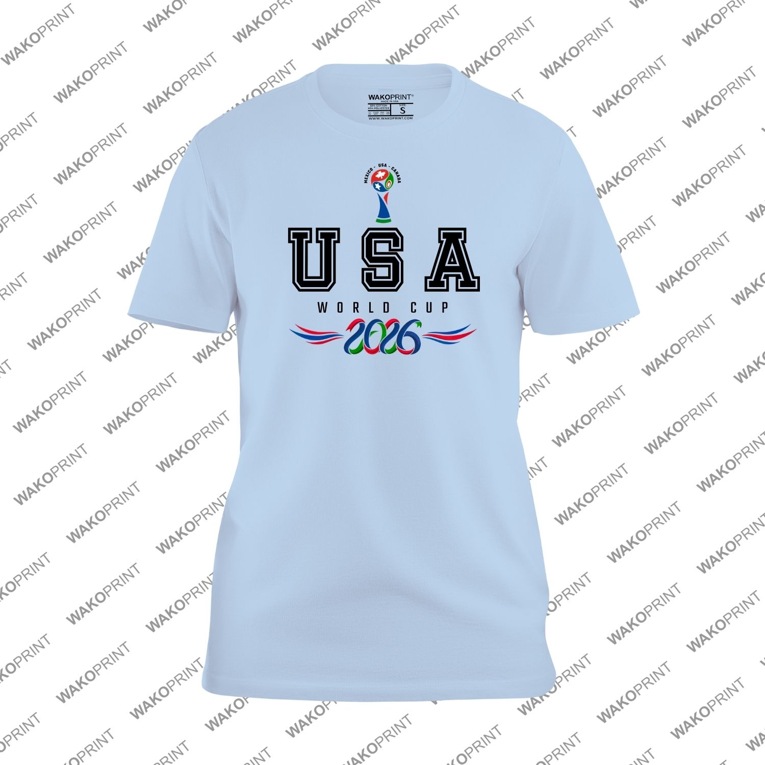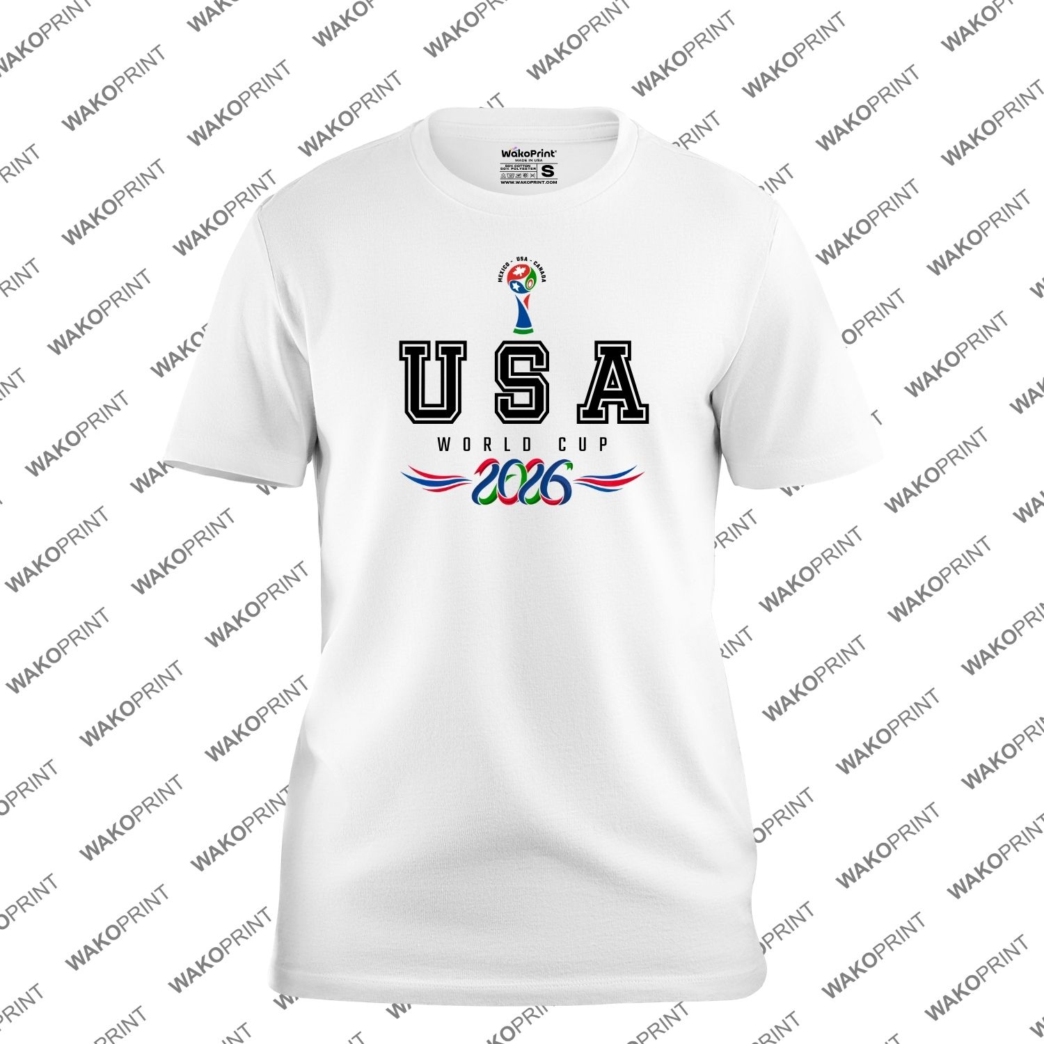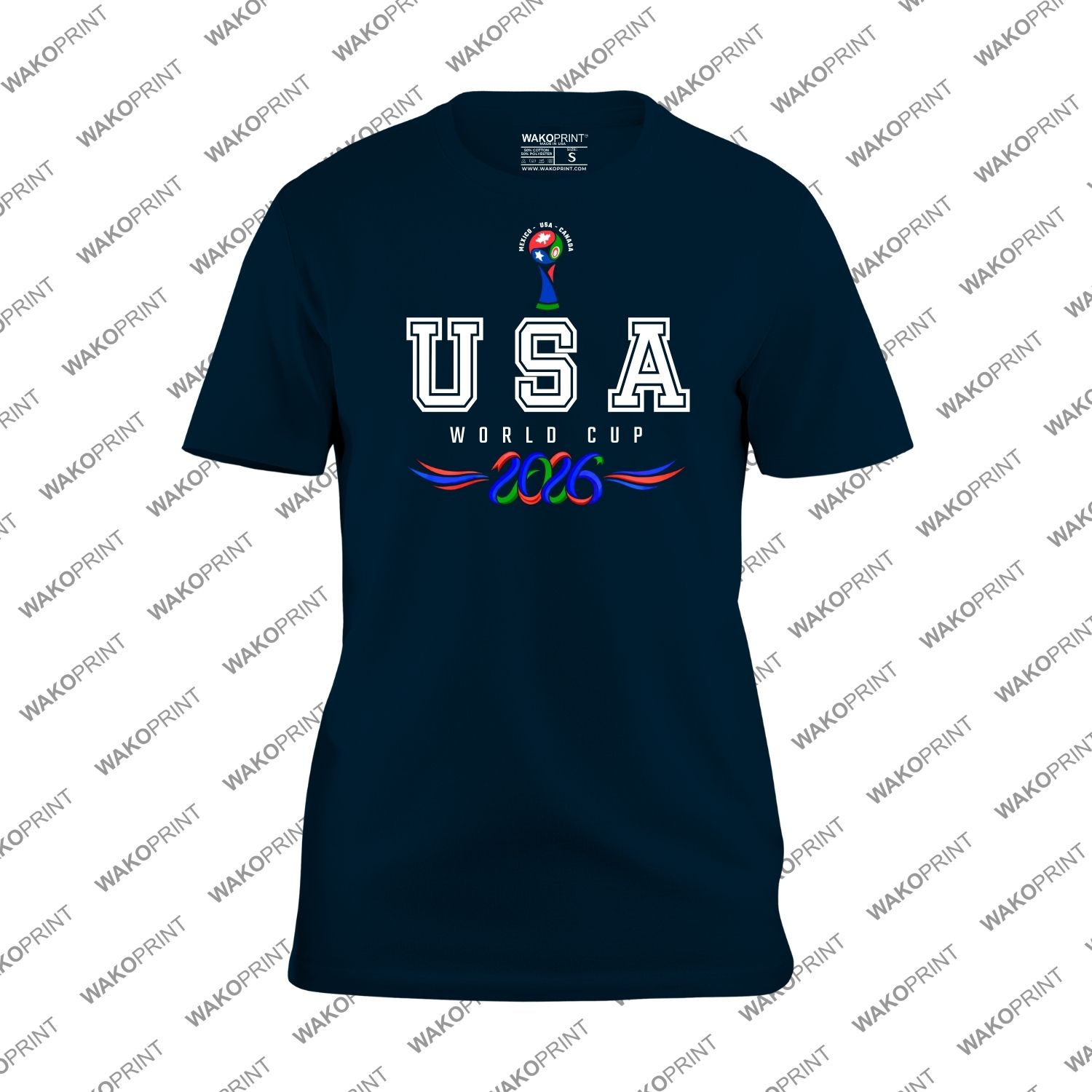 Show your passion for the 2026 world soccer tournament with this USA Copa Mundial 2026 graphic shirt. Featuring bold USA lettering and a championship inspired trophy design, this tee is perfect for fans supporting their country during the biggest international soccer event.