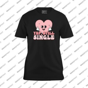 Make a bold and funny statement this Valentine’s Day with the Yep Still Single T-shirt, featuring a cute pink heart giving thumbs up — the perfect mix of humor and confidence. Ideal for singles who love to embrace their vibe with style and fun. Add your name or custom text on the back to make it personal and unique. Made from a soft cotton blend, this tee is comfortable, durable, and perfect for casual wear, parties, or as a humorous Valentine’s Day gift. Available in sizes S to 4XL and colors black, white, pink, natural, navy, and light blue, this shirt is a fun way to show your personality all year round.