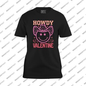 Howdy Valentine Shirt | Western Valentine’s Day T-Shirt | Cute Cowboy Hat Smiley Design | Personalized Name on Back