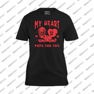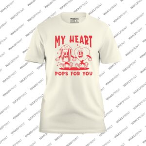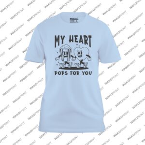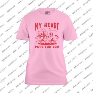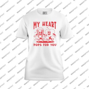 Add a touch of fun and love to your Valentine’s outfit with this My Heart Pops for You T-shirt, featuring a playful popcorn and heart character design in bold red. Perfect for celebrating Valentine’s Day with your partner, friends, or family in a lighthearted, unique way. Customize it with your name or message on the back to make it one-of-a-kind. Made from soft and durable cotton blend fabric, this tee combines comfort and style for all-day wear. Available in sizes from S to 4XL and in black, white, pink, natural, light blue, and navy, it’s the perfect Valentine’s Day shirt for couples or anyone who loves fun graphic designs.