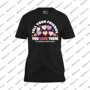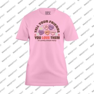 Spread love and positivity with this Tell Your Friends You Love Them T-shirt, featuring colorful candy hearts and cheerful text that celebrates friendship and kindness. Perfect for Valentine’s Day, Galentine’s Day, or simply showing appreciation for your favorite people. You can customize it with your name or text on the back for a unique and personal touch. Made with a soft, breathable cotton blend, this tee is both comfortable and stylish, ideal for casual wear, gifts, or matching with friends. Available in sizes S to 4XL and colors black, white, pink, natural, light blue, and navy, this shirt brings a fun and heartfelt message wherever you go.